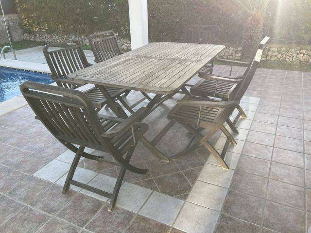 6 Stück passende Stühle, klappbar, jedoch benötigt das Set neue Farbe