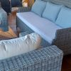 Mit allen Kissen, synthetisches Rattan in Grau.