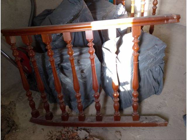 Ich biete hier ein gebogenes Holzgeländer an. Es ist sehr massiv und schwer und vermutlich aus Tropenholz gefertigt. Es wurde in zwei Segmente zersägt (siehe Bilder). Abholung in Cala Romántica.