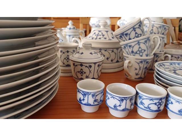 Geschirr "Indisch-Blau" von den Marken Winterling und Kahla. Nur Abholung. Nur alles zusammen! Gebraucht: 6 Suppenteller, 13 grosse Teller (mit einzelnen Macken, siehe Foto), 6 kleine Teller, 6 Untertassen, 7 Kaffeetassen, 1 Milchkännchen, 1 Zuckerdose, 2 Kaffee-/Teekanne, 1 Schüssel mit Deckel, 10 Suppentassen,