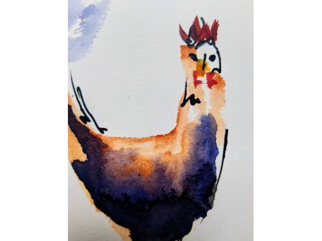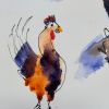 Preciöses originales Aquarell von Hühnern, handgemalt auf Papier
