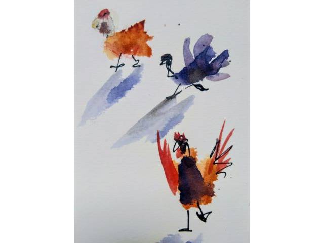 Gruppe von Hühnern in Aquarell auf Papier