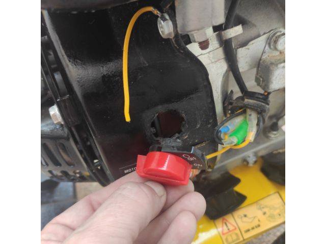 Der Startknopf ist locker und das Kabel muss wieder am Startknopf befestigt werden (siehe Bild), das ist jedoch kein Problem; die Maschine funktioniert einwandfrei.