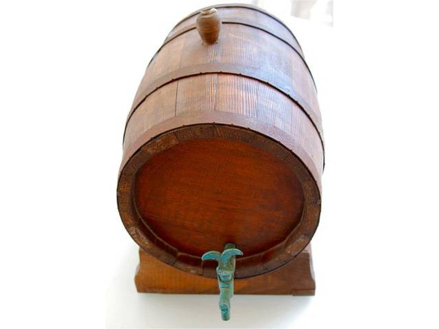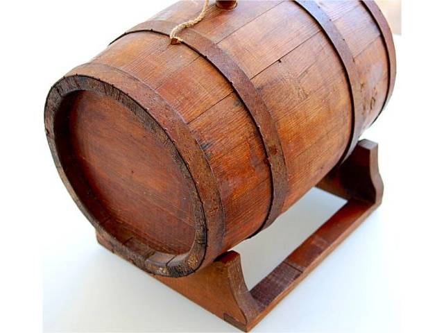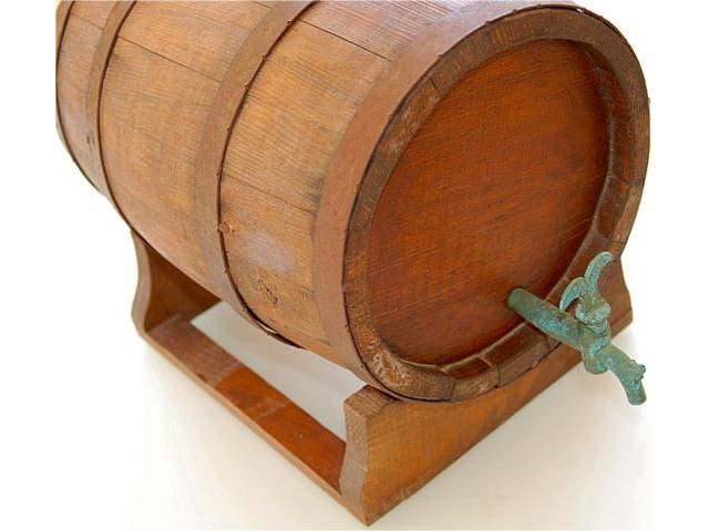 10 l Holzfass Schnapsfass, Weinfass Holz Kupferbeschläge und Ständer