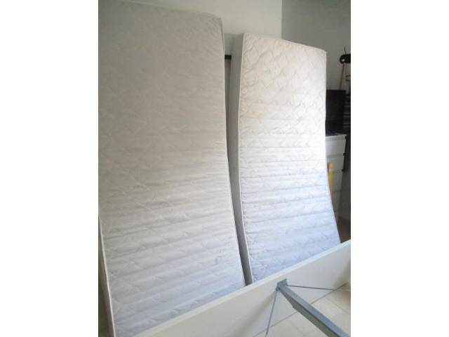 mit dabei sind außerdem 2 Matratzen ( neuwertig ) , 2 einfache Lattenroste und ein Ikea Topper TUDDAL 180 x 200 cm.
