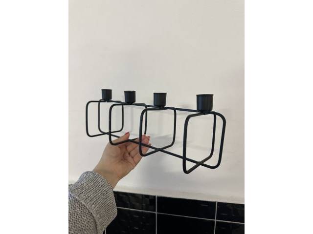 Kerzenständer schwarz - genutzt als Adventskranz für 4 schmale Kerzen - Länge 40 cm