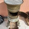 Der Ofen hat eine Höhe von 65 cm. 100 mm Ofenrohrabgang. 3 Füsse. In Messingfarben gehalten. Top- Abdeckung nicht original. Selbstabholung in 07240 Sant Joan.