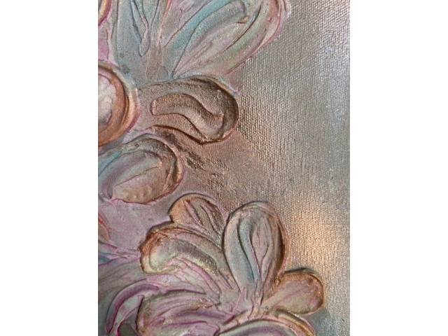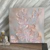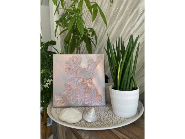 Diese kleine Leinwand wurde mit Modelliermasse und unterschiedlichen Farben verziert.