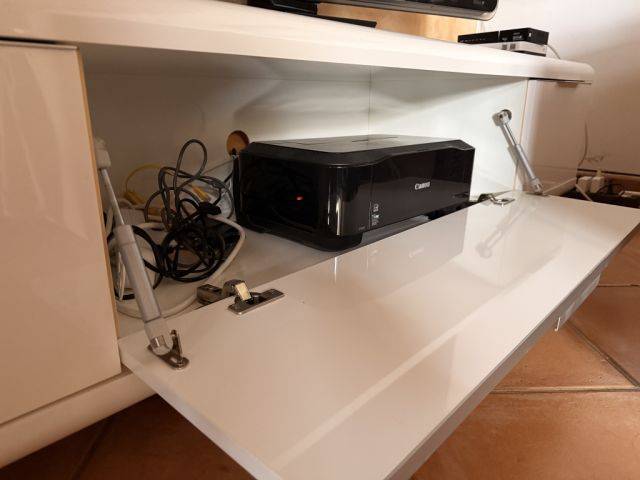 2 Schubladen auf der Seite, grosses Fach mit Klapptüre in der Mitte.