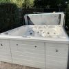 Ich verkaufe einen luxuriösen Außen-Whirlpool/ Jacuzzi Kapazität für 5/6 Personen, sehr wenig genutzt, wir hatten ihn auf meinem Grundstück in Deutschland, aber er wurde vor ein paar Jahren in den USA gekauft, wenig genutzt, in sehr gutem Zustand und funktioniert einwandfrei. Es ist kein Billigartikel, es ist sehr robust und aus hochwertigen Materialien und Techniken gefertigt, es wiegt etwa 350 kg.