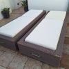 Verkaufe ein exklusives Set aus zwei hochwertigen Outdoor-Liegen der belgischen Designmarke Manutti. Die Liegen sind robust aus wetterfestem Polyrattan gefertigt und kommen inklusive der cremeweißen Auflagen.