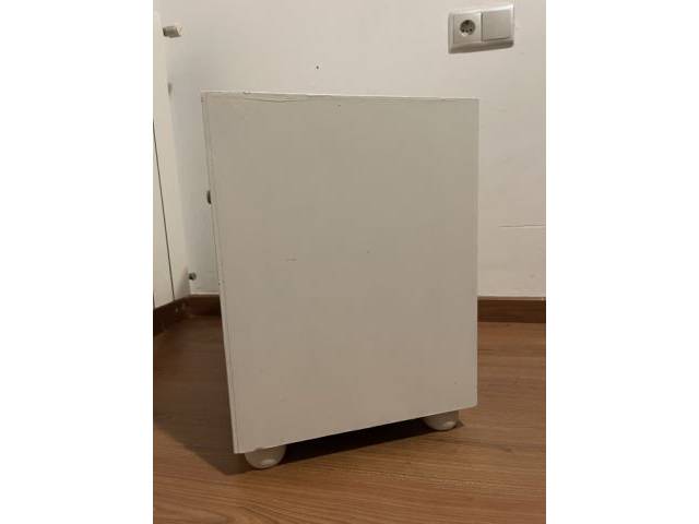 Weißes Nachtkästchen aus Holz mit einer Schublade
