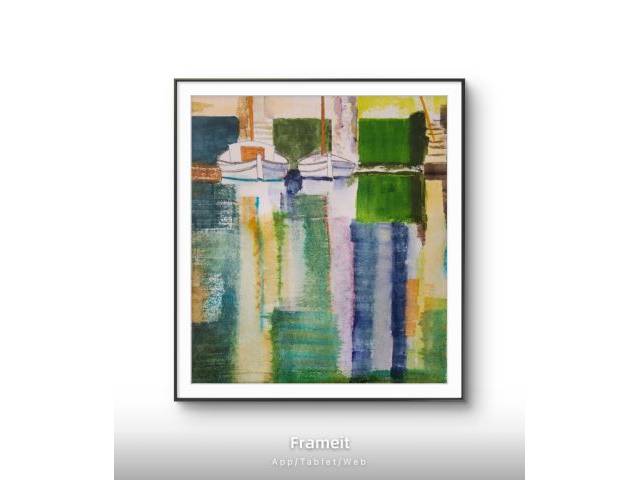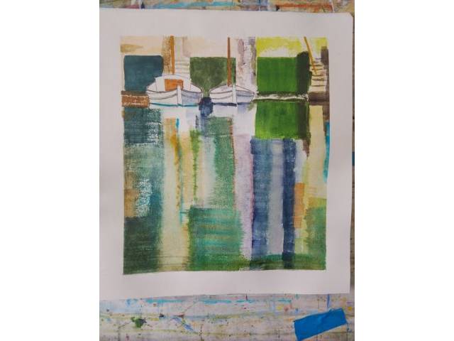Originales maritimes Aquarell, es Riveto von Portocolom, neues blaues und grünes Papier