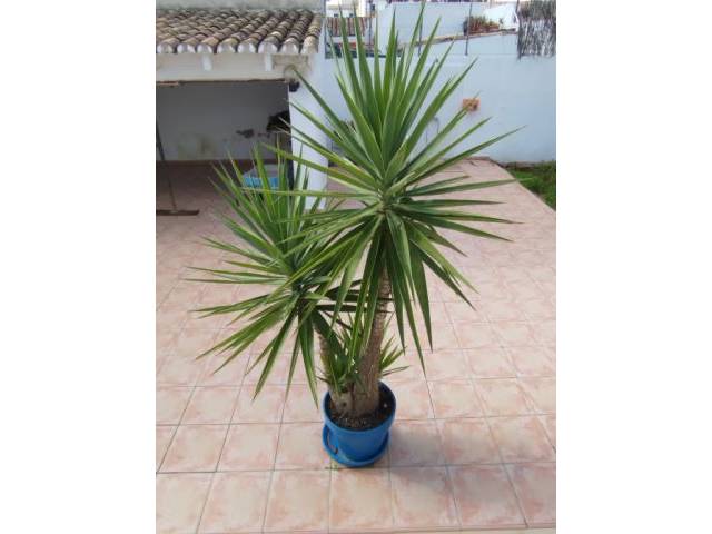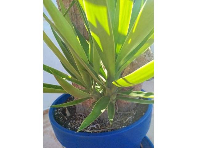 Yucca Palma mit zwei dicken Stämmen und mit insgesamt 5 neuen Trieben.
