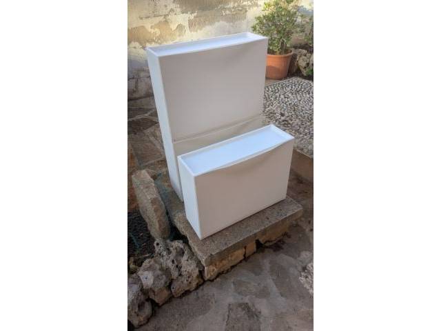 Zu verkaufen ist in Farbe weiss, ein aus Plastik hergestellter Schuhschrank, bestehend aus drei Teilen, die variable ineinander aufzubauen ist. Einzeln oder zusammen können Sie auch benutzen. Sehr einfach zu reinigen.