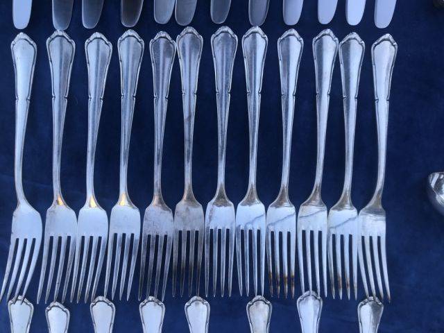Ich biete hier ein 58 teiliges Silberbesteck (90er) an. Es ist fast vollständig und sehr gut erhalten.
