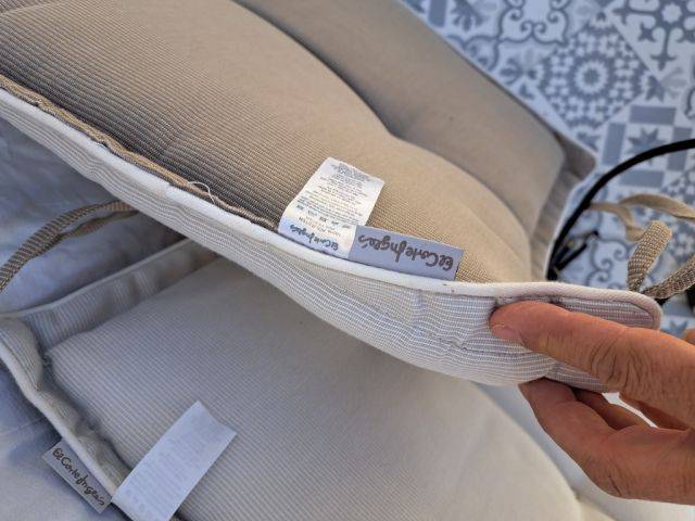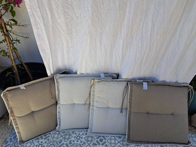 4 Stück, Wendekissen, 2 farbig, mit Schnüren zum befestigen. Guter Zustand, hohe Qualität, vom El Corte Ingles, Kissen befinden sich bei Paguera.
