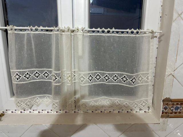 Verkaufe 2 Teleskopscheibengardinenstange 50- 90 cm mit 2 passenden Scheibengardinen