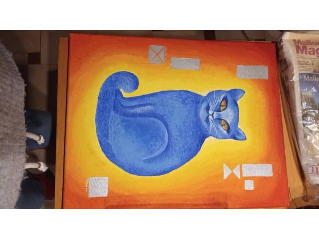 Selbstgemaltes orangfarbenes Kaztenbild abzugeben