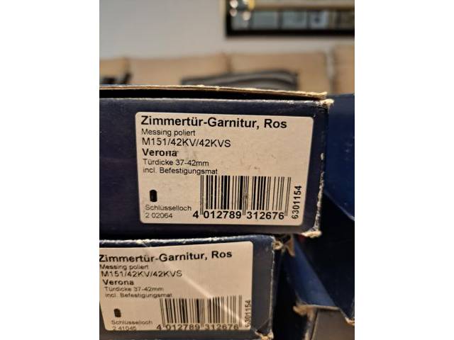 Ich verkaufe Zimmertür-Garnituren Messing poliert von Hoppe. Original verpackt.