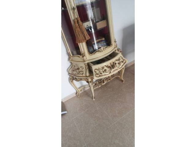 Dies ist eine Vitrine im venezianischen Barockstil mit cremefarbener Lackierung und vergoldeten Schnitzereien.