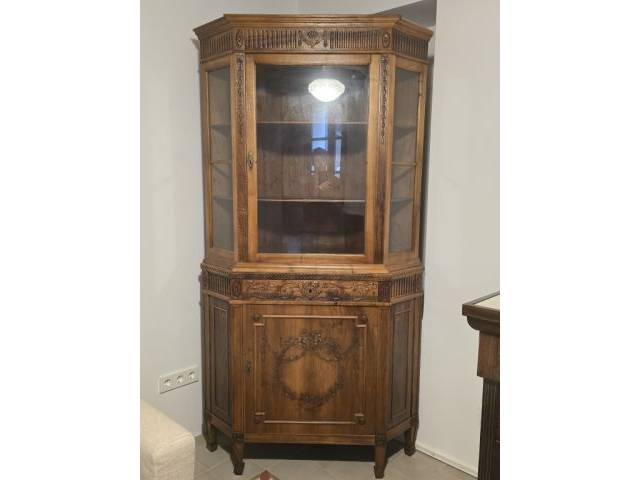 antiker Eckschrank in Nußbaum, Louis Seize