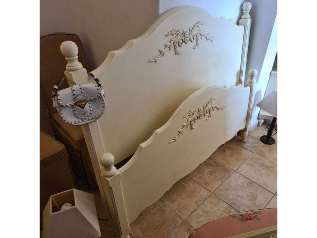 Zum Verkauf steht ein massives Holzbett in Créme mit Verzierungen. 4-teilig: Die Höhe des Kopfteils beträgt ca. 123 cm, die Höhe des Fußteils ca. 79 cm. Die beiden Seitenteile haben eine Länge von 200 cm, wobei die Gesamtlänge ca. 220 cm beträgt. Die Breite für das Lattenrost beträgt 140 cm und die gesamte Breite beträgt ca. 150 cm. Das Bett braucht ein wenig neue Farbe. Deshalb der niedrige Preis für Massivholzbett. Besichtigung und Abholung ZWISCHEN Andratx und Port d'Andratx (Autobahn Ma-1). Kein Versand.