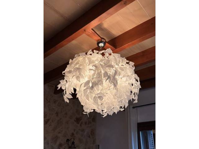 Grosse, schöne weisse Deckenlampe mit Stoffblätter. „Zweige“ können beliebig geformt werden.