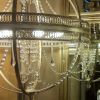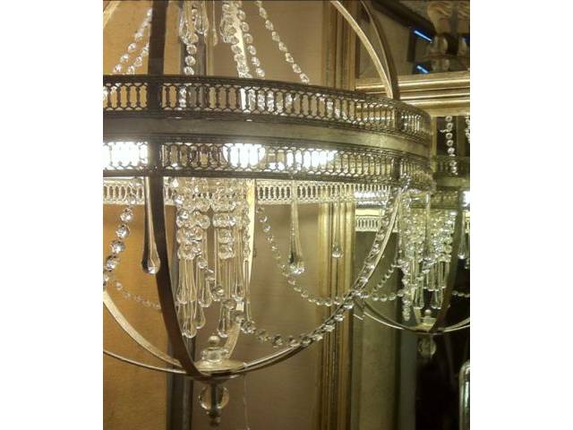 Metallgestell, Kristallteile aus Glas und in verschiedenen Formen, teilweise mit Facettenschliff.