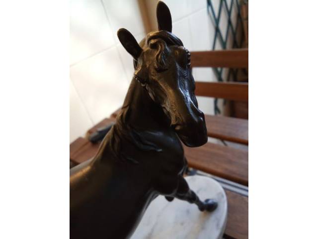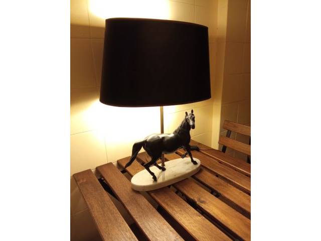 Dekorative Bronzelampe Pferd – Tischlampe auf Carrara Marmor Sockel -