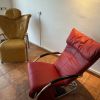 Biete 2 Designerstühle aus Leder mit verstellbarem Fußteil.