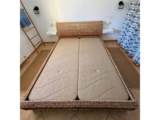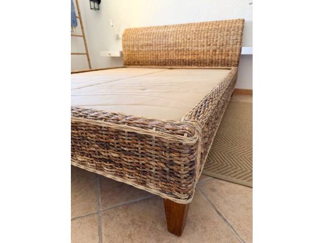 Aus Platzgründen verkaufe ich dieses Doppelbett aus Holz bzw Natur-Geflecht.