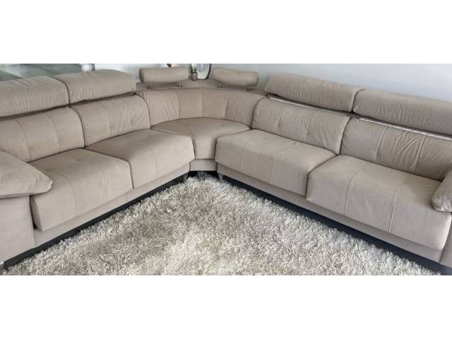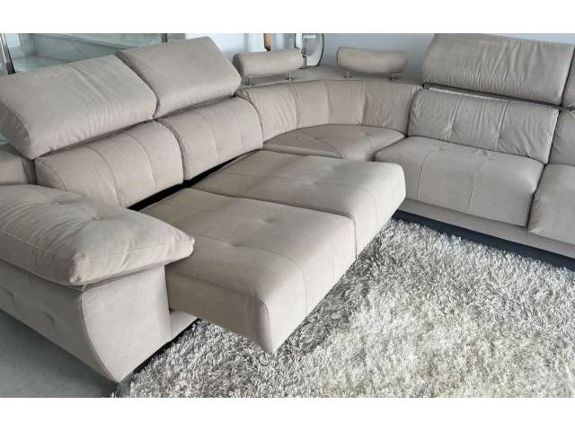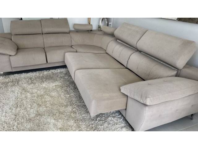 Sehr guter Zustand, die Sitze sind ausziehbar, die Kopfstützen in unterschiedliche Positionen verstellbar (siehe Fotos), Sofa besteht aus drei Teilen (zusammengesteckt). Material: Stoff (schmutzabweisend), Füsse aus Chrom.