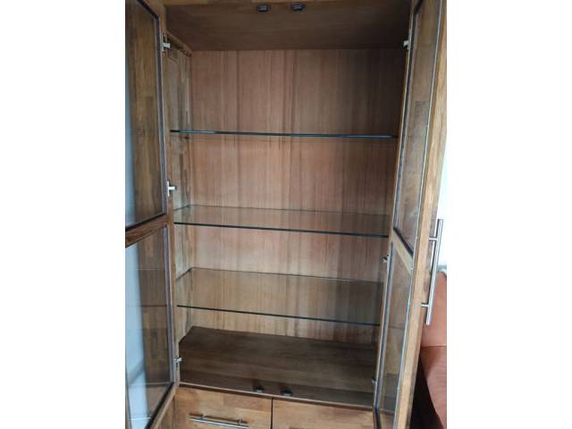 Verkaufe an Abholer Eichen-Vitrine eiche mittel mit 2 Schubladen und drei Glasböden dick.