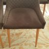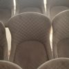 Elegante Esszimmerstühle aus grauem Samt mit Rautensteppung und Holzbeinen: modern und bequem