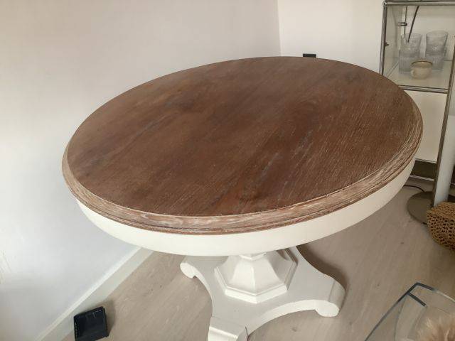 Runder Holz Esstisch weiß gewischt!