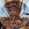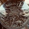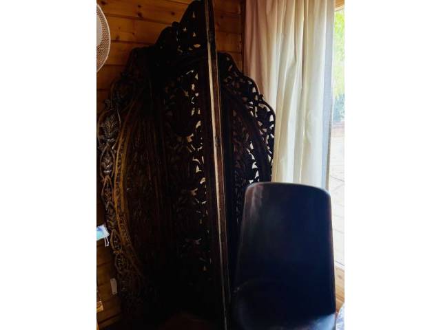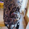 Ein besonderes Highlight stellt der dazu gehörige Esstisch dar, wenn sich das Sonnenlicht durch die Glasplatte in den Konturen des liebevollen Schnitzwerkes bricht.