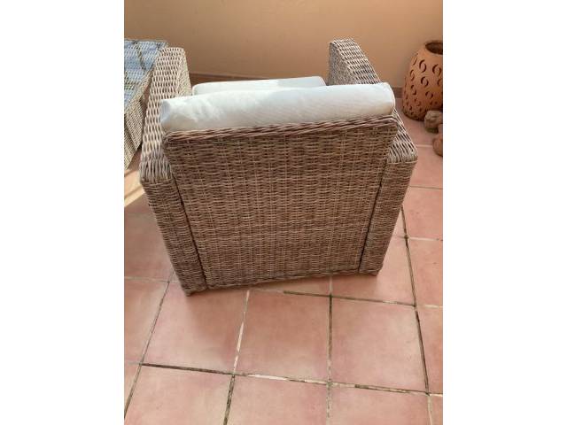 Garten / Terrassen / Balkon Möbel, Ratan Stühle mit Polstern, Fußteil, Tisch Höhen verstellbar