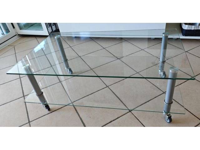 Eleganter Glas Couchtisch oder ähnliches auf Rollen.