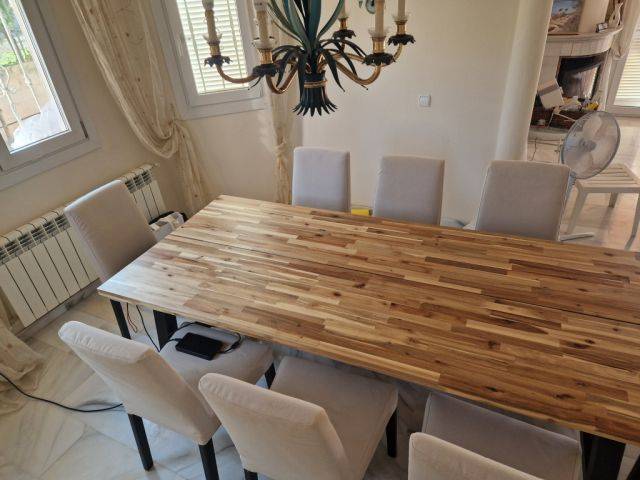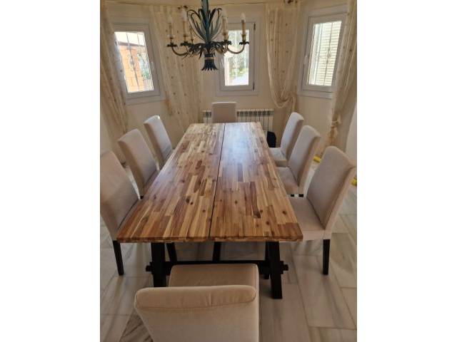 Großer Wohnzimmertisch aus Massivholz mit 8 Stühlen zu verkaufen