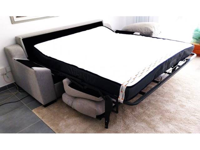 Grosses graues Stoffschlafsofa 230 x 102 cm, uffgeklapptes Bett fuer Gaeste 190 x 160 cm, stabiles ordentliches Metallgestell mit absolut fleckenfreier Matratze, 320 € ,, mobil 659 637 788 ( TRANSPORTE-UMZUEGE-LAGERUNG!)