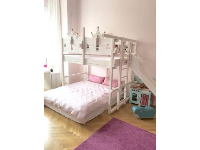 Hochwertiges Hochbett 140 x 200 cm – mit Treppe, Regal & Prinzessinnen-Details