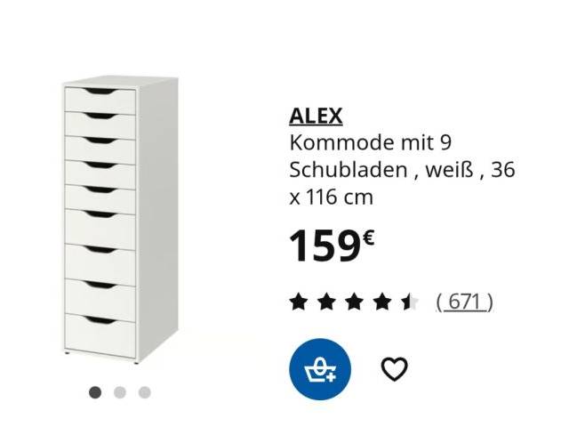 IKEA Kommode Serie ALEX mit 9 Schubladen weiß