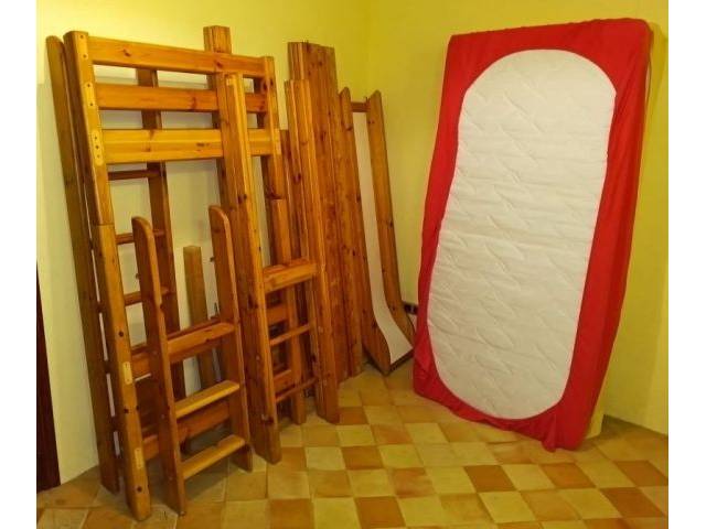 Verkaufe ein massives Echtholz - Stockbett / Kinderbett - Kombination mit Rutsche, zwei Leitern und zwei neuwertigen Matrazen.