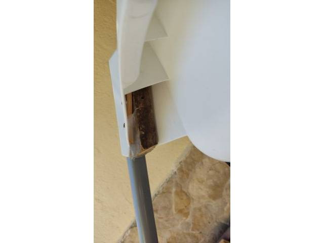 Der Stuhl ist mal repariert worden (siehe Bild), hat aber auf die Standfestigkeit keinen Einfluß.