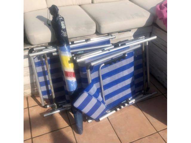 2 faltbare Sonnenliegen in gutem Zustand, leicht zu tragen.