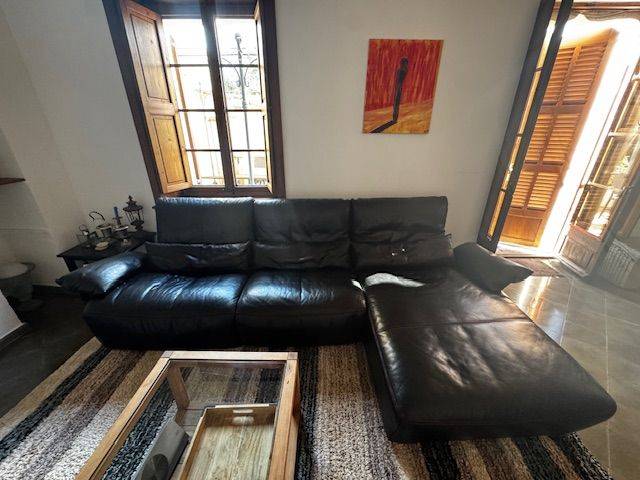 Leder Couch Musterring mit elektisch verstellbarrem Fußteil