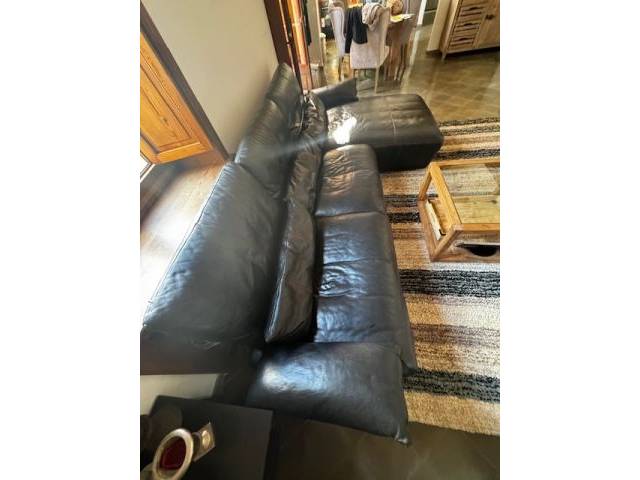 Ledercouch schwarz mit roten Ziernähten und elektrisch verstellbaren Fußteil - zwei funktionieren 1a
