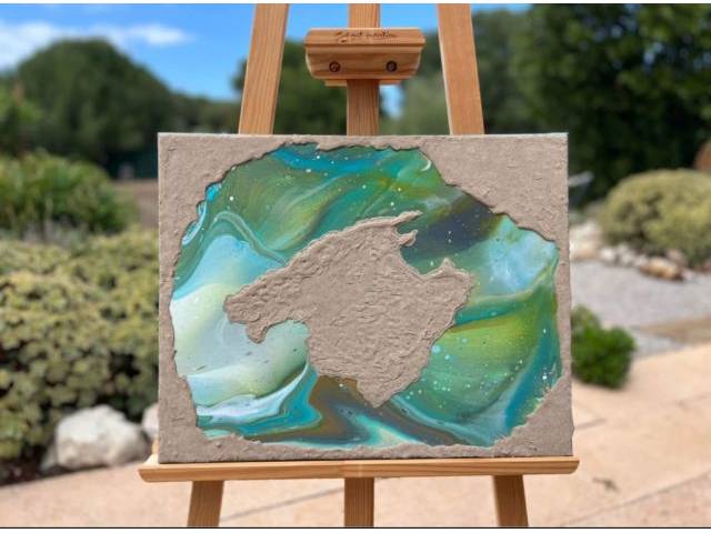 Mallorca Bild Acryl (grün, blau, Sand ) mit Sand auf Leinwand 50x40 handgemachtes Unikat.
