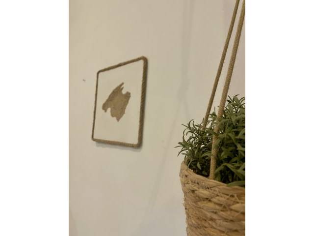 Verkaufe ein außergewöhnliches Mallorca Bild. Die Insel ist als Relief aus Sand gearbeitet auf weißem Untergrund mit einem Rahmen aus einer Hanfschnur/Juteschnur. Abmessungen: ca. 30x30 cm. Unikat.